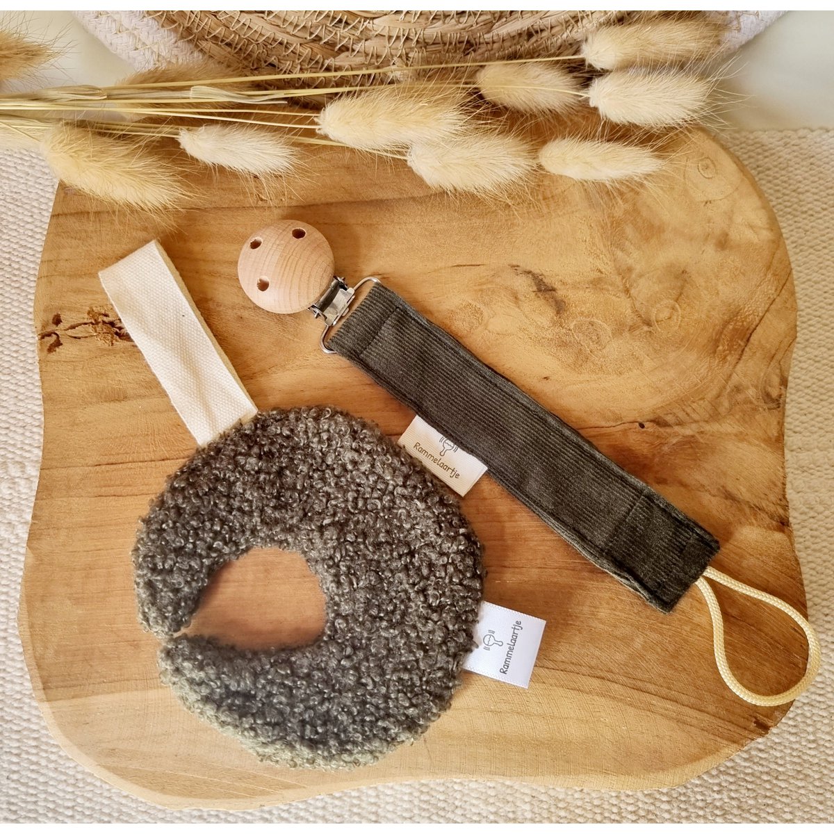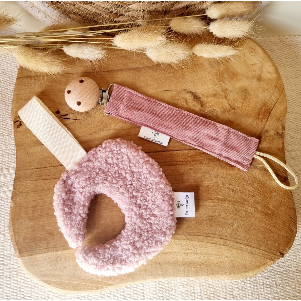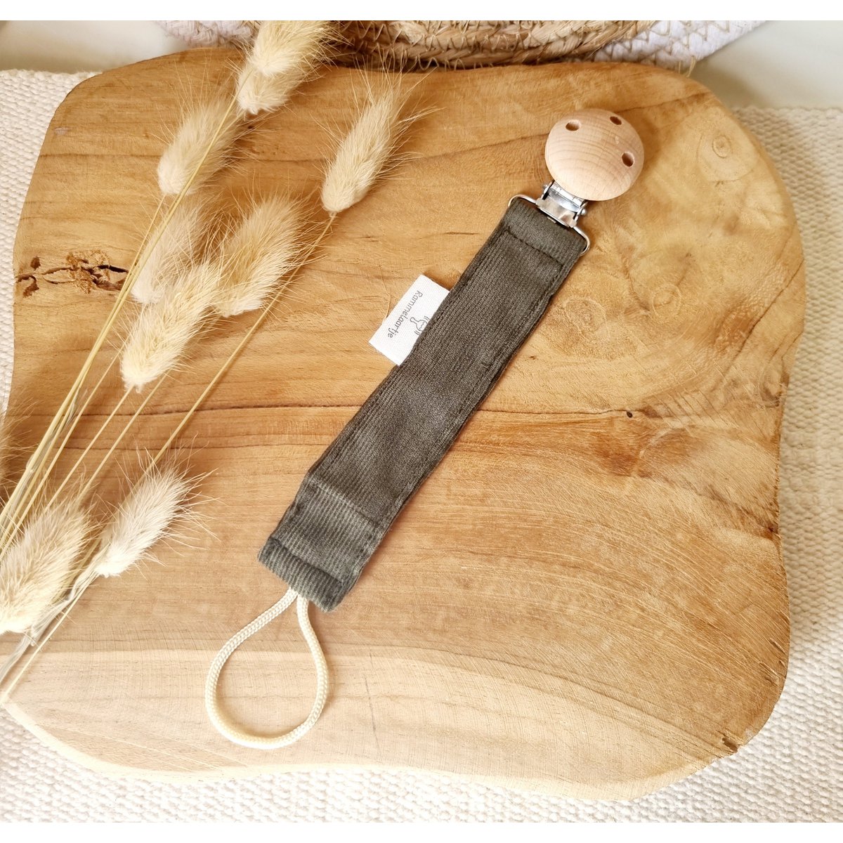 Dit speenkoord van zachte ribstof is een must-have voor je kleintje. Dankzij de houten clip bevestig je het eenvoudig aan kleding of een doekje/speeltje, zodat het speentje altijd binnen handbereik is. Het speenkoord combineert praktisch gemak met een stijlvolle uitstraling, perfect voor jouw kleintje’s avonturen. Maak het extra speciaal door het speenkoord te personaliseren met de naam of tekst van jouw keuze, geborduurd met zorg en liefde.