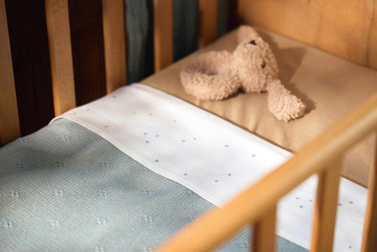 Was het speendoekje met de hand, strijk het niet, droog het niet in de droger en stoom het niet.