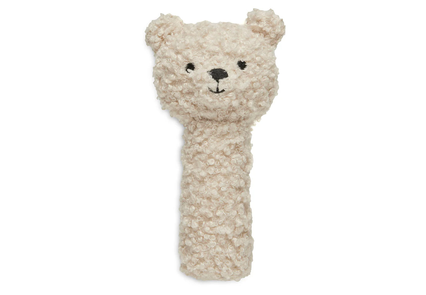 Schud en speel met dit lieve, gebreide rammelaartje! Het vrolijke dierengezichtje trekt meteen de aandacht van je kleintje. Binnenin zorgen zachte belletjes voor een gezellig gerinkel dat keer op keer nieuwsgierigheid opwekt. Leuk om vast te grijpen, te rammelen en te knuffelen.