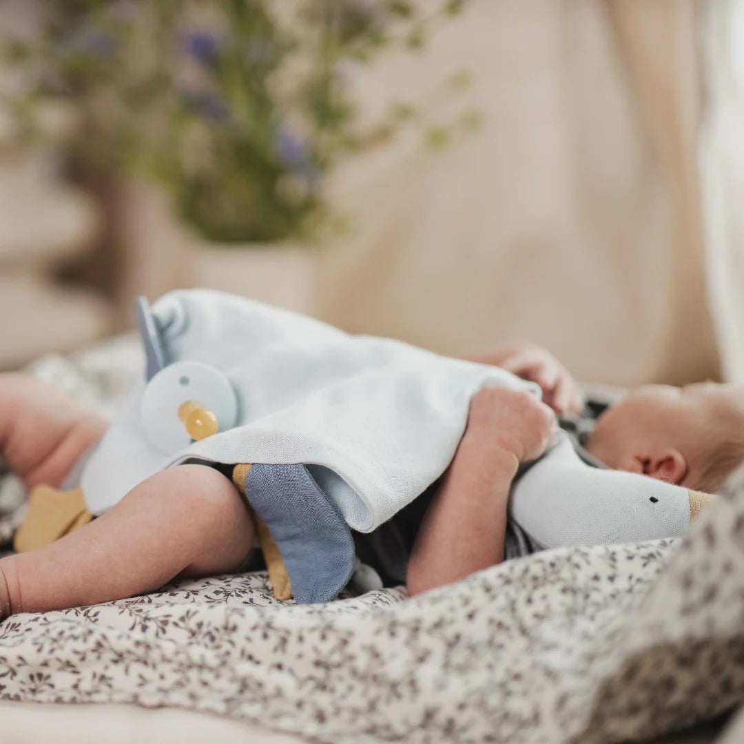 Dankzij het handige lusje kan je er eenvoudig een speentje aan bevestigen, zodat het nooit meer zoek raakt en altijd binnen handbereik is. Maak het extra bijzonder: personaliseer dit konijntje met de naam van jouw baby, prachtig geborduurd voor een unieke en persoonlijke touch.